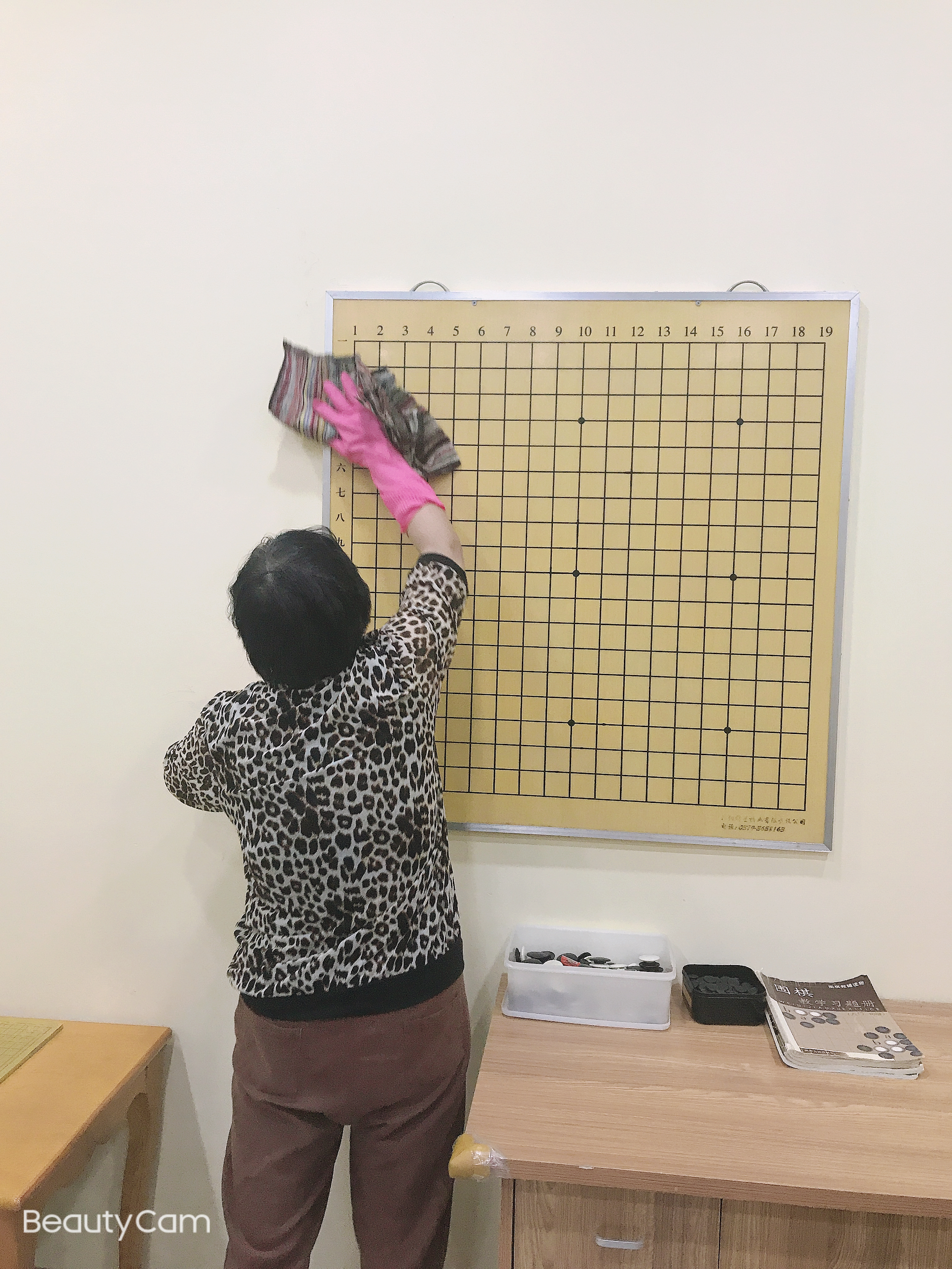 -好勒,打扫完毕,准备全面消毒啦!先从教室开始,走廊、厕所、前台等统统消毒消毒啦!教务老师辛苦啦!消毒完毕我们来看一看教室消毒后是什么样子哒!嗯嗯,还是可以的,干净整洁了许多呢!