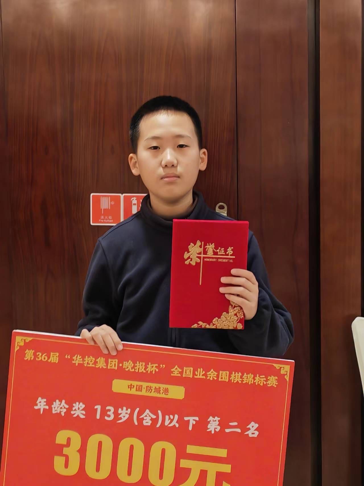 第36届晚报杯全国业余围棋锦标赛于2023年12月16日至21日在广西举行,上海杰盛围棋文化进修学校优秀学员程一然同学参加了此次比赛。在前六轮的比赛中,程一然表现欠佳,二胜四负。但从中途开始他突然发力,过关斩将,连战皆捷,取得了七连胜的好成绩!特别是最后一轮比赛,完胜老冠军李岱春8段。最终程一然获得了13岁以下组第二名的好成绩。让我们祝贺程一然! 希望程一然再接再厉,在以后的围棋道路上越走越好。也希望杰盛的其他学员能坚持下棋,学好功课的同时,利用业余时间多多练习,同样为杰盛争光,为自己争光。