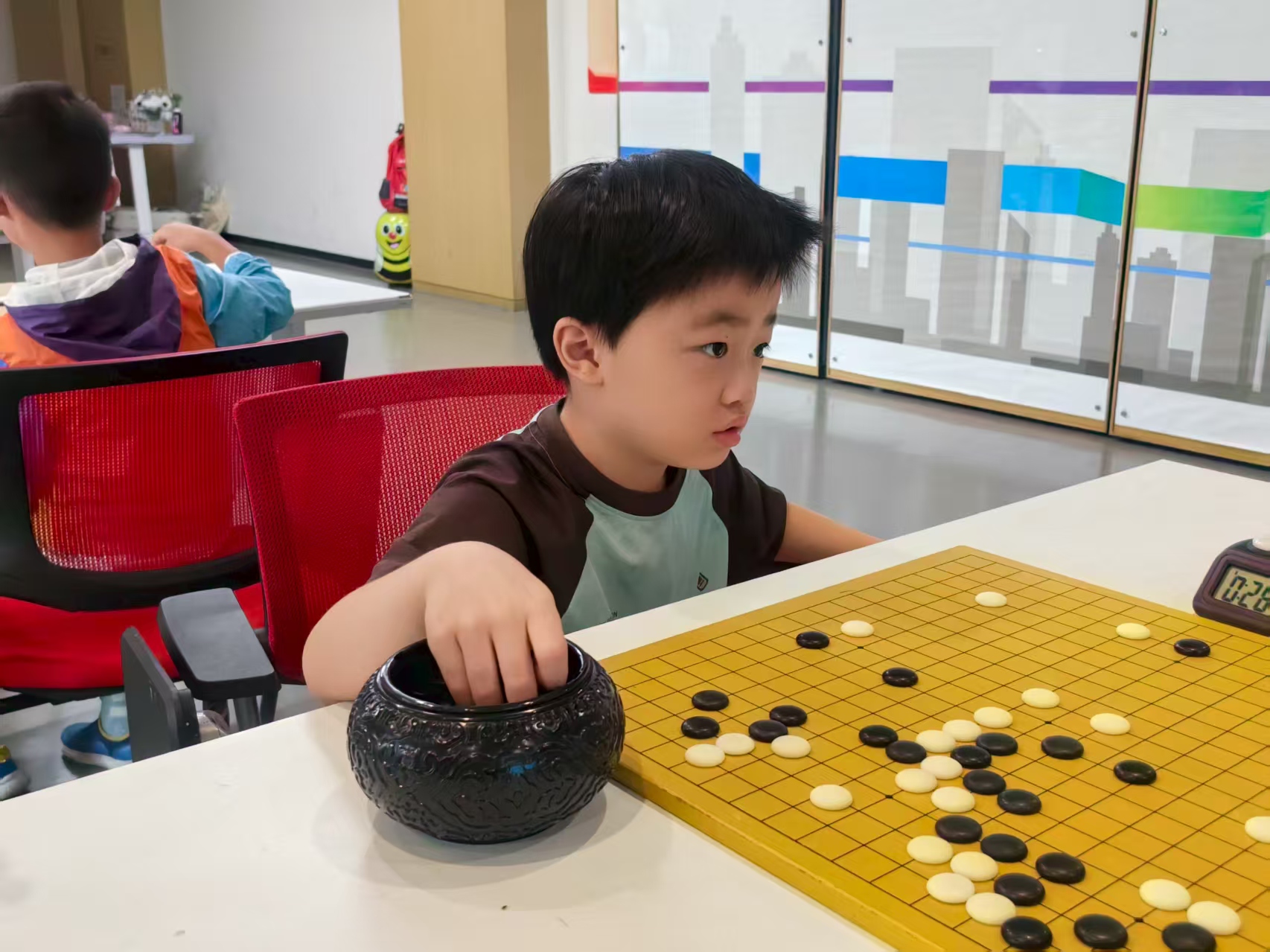 为了让学员快速提升围棋水平,增加学员对围棋的喜爱,杰盛围棋在暑期期间特开设了2025年暑期集训班。集训班采用自主教研的教案,结合学员的情况和多年教学的经验进行针对性的授课,经过第一阶段的集训,学员的水平提升了很多,特别是有部分学员通过第一阶段的集训,在升级、升段的赛场上发挥出色,成功升级、升段: 1.张曦文小朋友成功升入业余2段。 2.顾舜华成功升入业余5段。 3.季家益成功升入5段。 特别是在7月13日这天,杰盛围棋学校和上海奕音文化转播有限公司,合作举办了“雏鹰争锋杯”2025年第一届黄浦-普陀少儿围棋交流赛,杰盛学员积极参赛,奋力拼搏,取得了客场胜利,完美拿下首秀。 所以说:集训能针对性的解决孩子平时大课的基础知识在实战中不能及时消化、正确运用的问题。日常班以知识点教学为主,加上孩子平时练棋少,更是苦于没有老师及时指点。而假期班课程老师会对每个孩子的棋进行针对性讲解,与日常班有很强的教学互补性。通过老师系统性的对学过的知识点进行针对性的梳理讲解,有目的性的弥补孩子学习中存在的漏洞和不足,和平时相比,课程更加集中,使孩子能全心投入进围棋里,学习遗忘率小,滚动效应强,使孩子棋力进步明显比平时要快。 希望接下来的时间里,所有的学员要抽出时间,积极的参加第二期的围棋集训,让自己和水平接近、不同班级的小朋友一起下棋。两两对弈,更能贴近比赛效果,从而促进综合实战能力的提高,集中磨炼自己面对胜负和困难的顽强意志,极大地锻炼自己面对未来的抗挫能力,让自己不断地强大,杰盛集训期待你的参与!